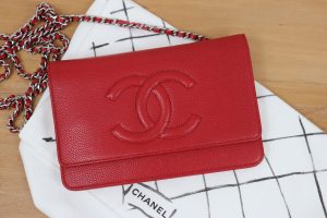 Chanel Vintage Timeless Red Caviar Wallet On Chain WOC