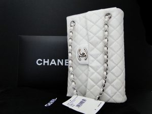 Chanel White Patent Leather UPSIDE DOWN Tote Bag