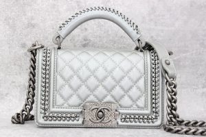 Chanel Top Handle Small Boy Bag Metallic Silver Calfskin