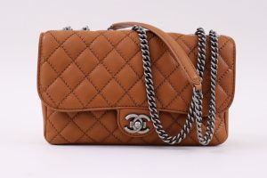 Chanel Tan Leather Embossed Stitch Crossbody Flap Bag
