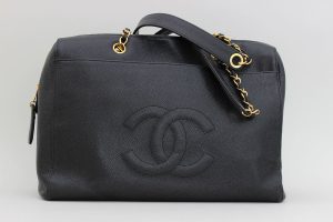 Chanel Vintage Black Caviar CC Logo Chain Tote