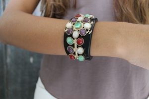 Chanel Gripoix Jeweled Black Resin CC Wide Cuff 08P