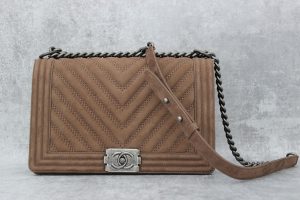 Chanel Nubuck Chevron New Medium Boy Bag Brown