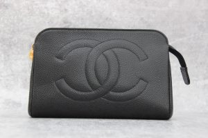 Chanel Black Caviar Leather Cosmetic Case