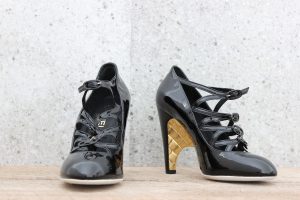 Chanel Black Patent Leather High Heel Mary Janes 9