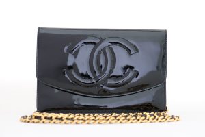 Chanel Black Patent Leather Timeless Wallet On Chain