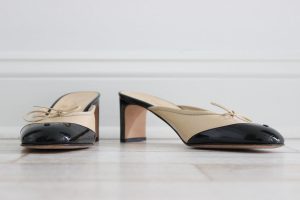 Chanel Beige & Black Leather CC Cap Toe Mules 10