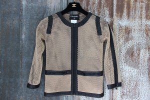 Chanel Beige & Black Perforated Jacket Cardigan 4