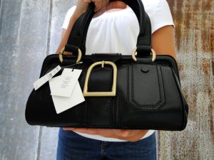 Celine Black Leather Framed Buckle Front ELLA Bag