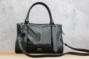 Burberry Crinkled Patent Leather Pilgrim Satchel Black