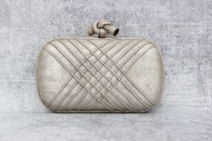 Bottega Veneta Metallic Leather Mineral Liseret Knot Clutch