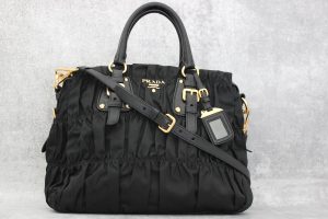 Prada Tessuto Nylon Gauffre Ruched Shoulder Bag