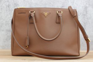 Prada Brown Saffiano Double Zip Tote