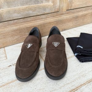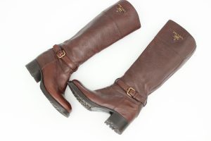 Prada brown distressed leather knee high boots