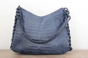 Nancy Gonzalez Medium Crocodile Chain Hobo Bag Blue