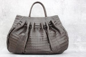 Nancy Gonzalez Brown Large Pleated Crocodile Tote ON HOLD