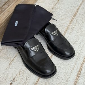 Prada Black Calfskin Triangle Loafers