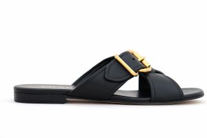 Prada Black Leather Buckled Flat Sandals