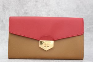 Prada Bicolore Saffiano Leather Metal Lock Wallet