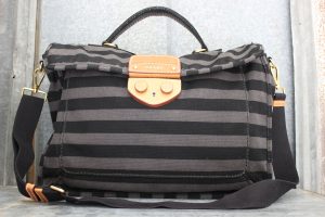 Prada Unisex Black & Grey Striped Canvas Messenger Bag