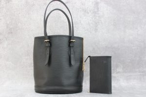 Louis Vuitton Black Epi Leather Petit Bucket with Pouch